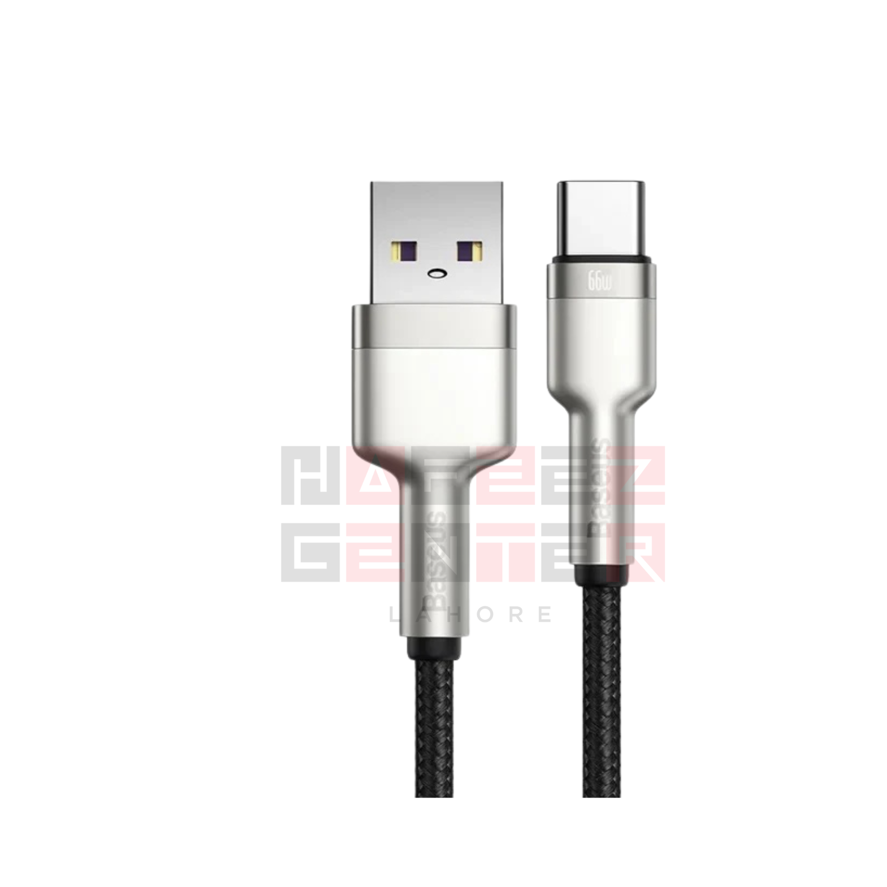 Brand: Baseus, Name: Baseus Cafule Series Metal Data Cable USB to Type-C 66W, Material: Zinc alloy+Nylon braided wire, Current: 11V/6A Max. 66W, Transmission speed: 480Mbps, Input interface: USB, Output interface: Type-C, Length: 0.25m, 1m, 2m, Color: Black(1m/2m)