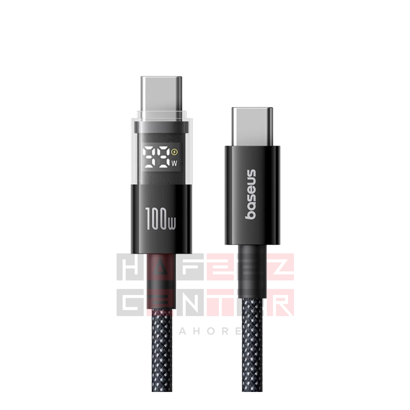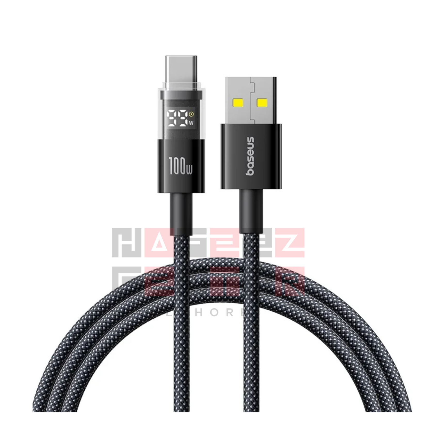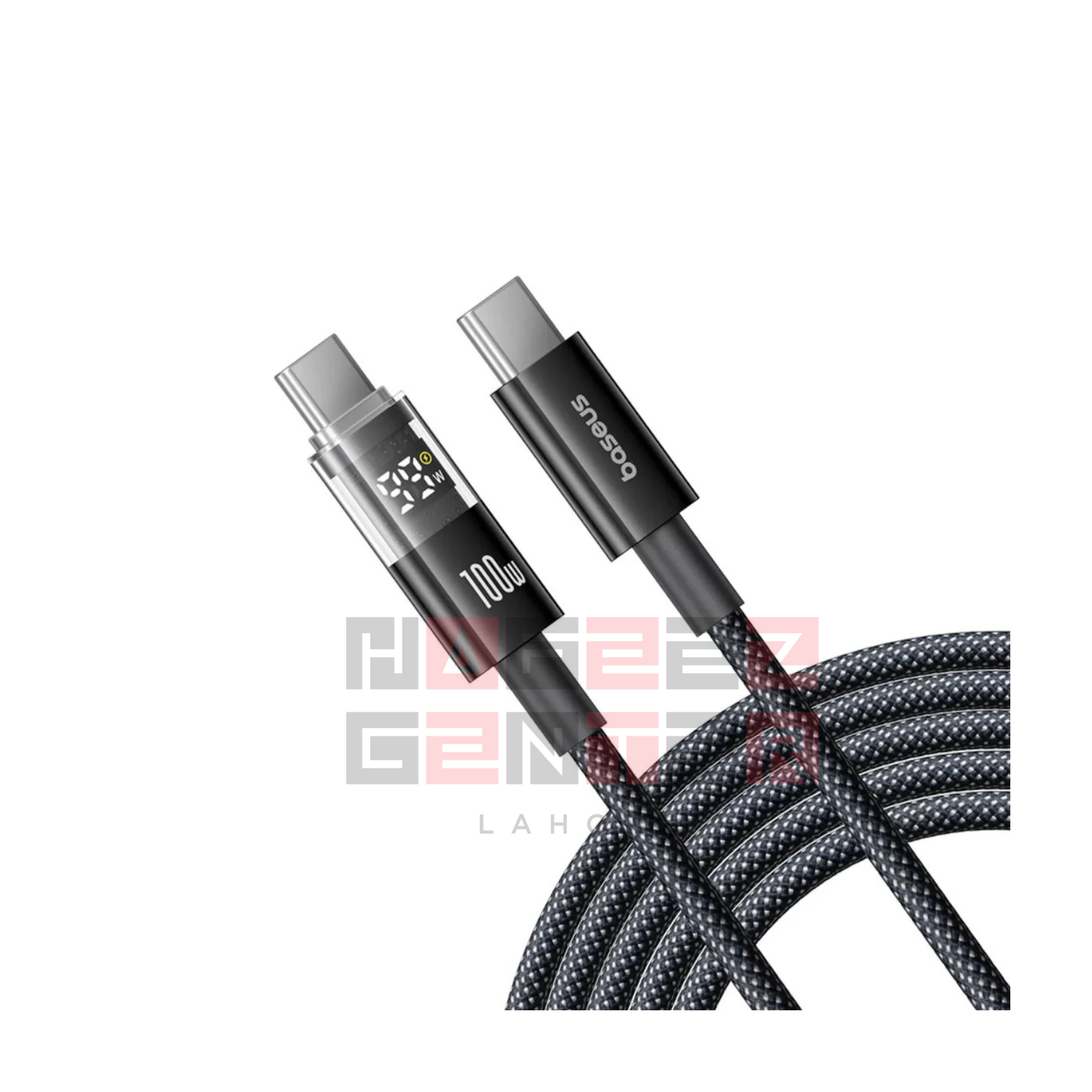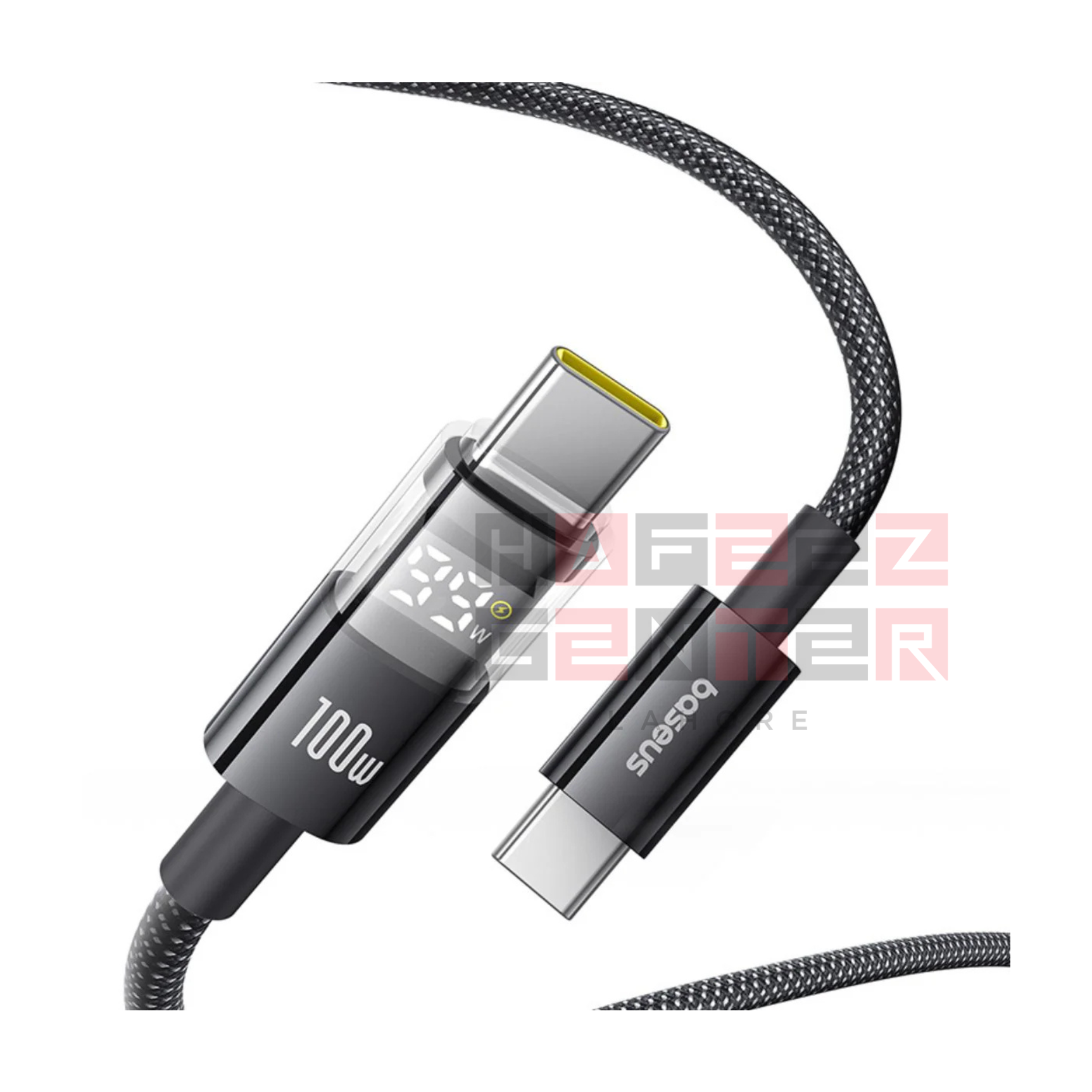 Charging Technology: PD 100W (supports fast charging for a variety of devices), Display: Landscape digital power display, Material: Premium nylon braid with a transparent connector design, Durability: Passed 10,000+ bending tests, Length: 1 meter, Color: Cosmic Black, Compatibility: Supports all USB-C devices, including laptops, smartphones, tablets, and more