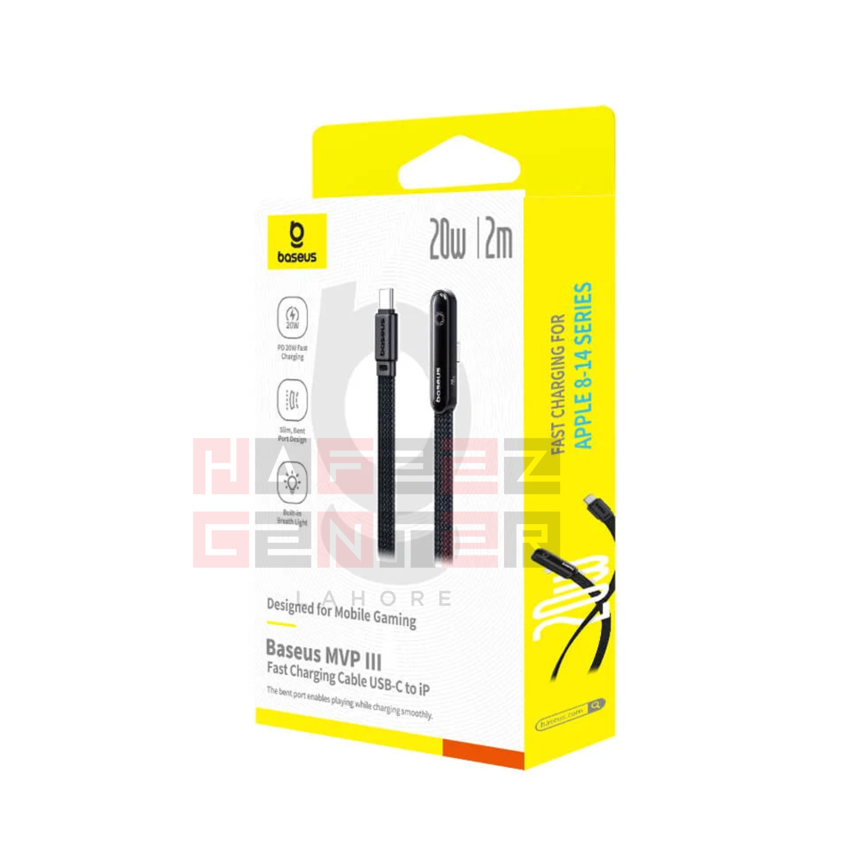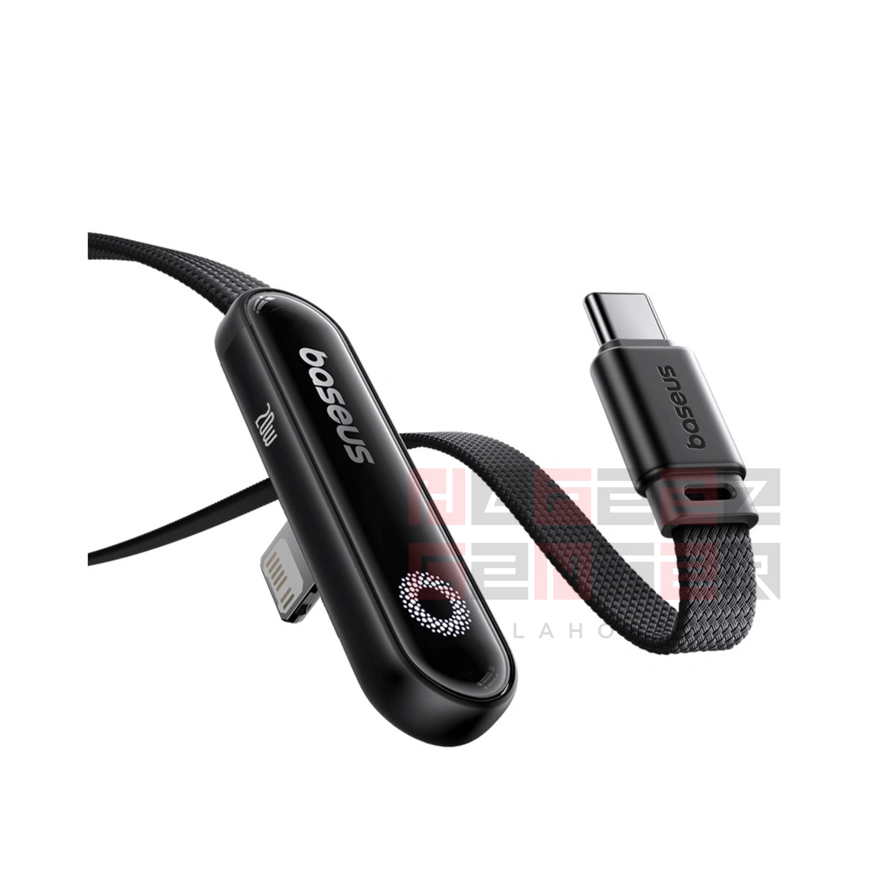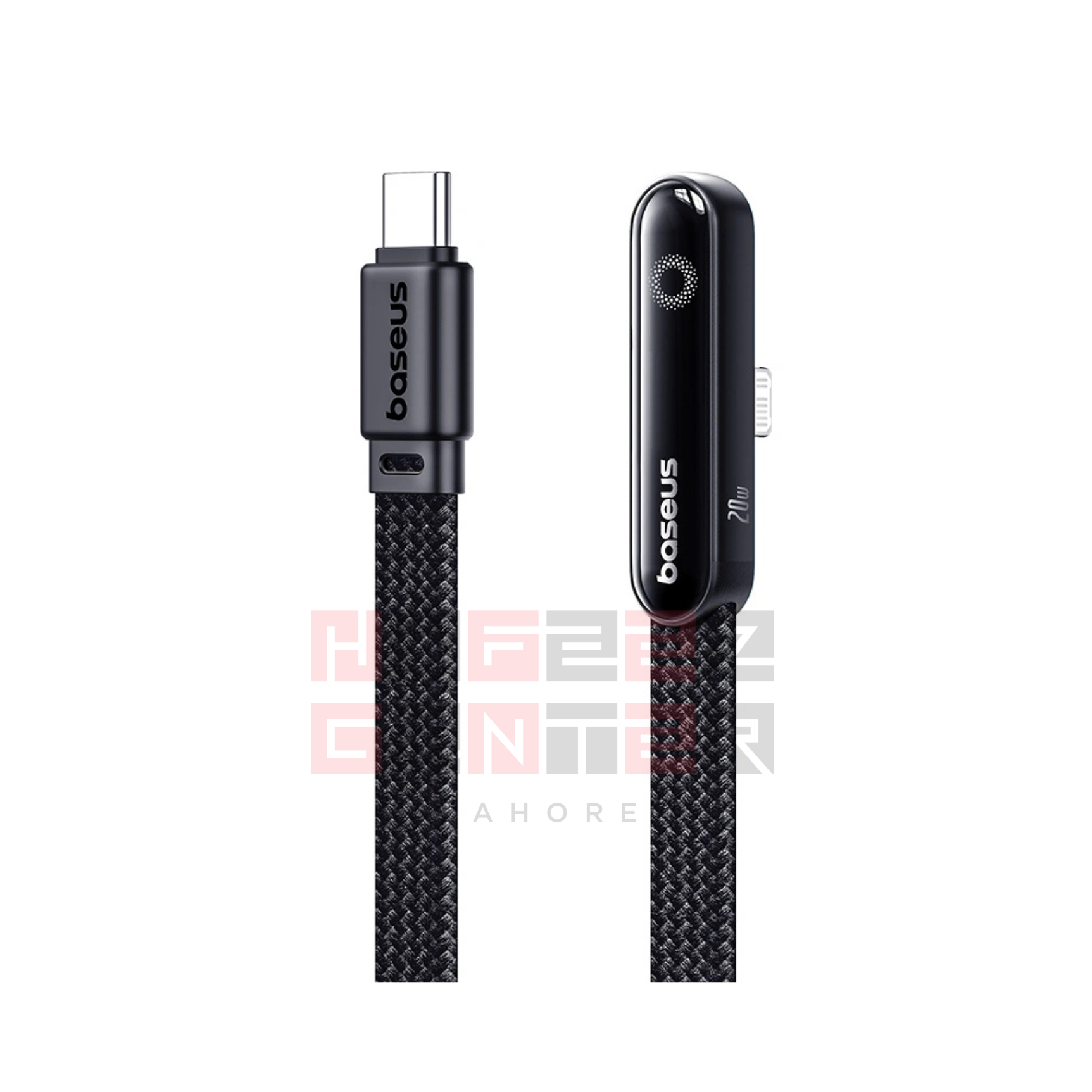 Name: Data Cable, Material: PC + Nylon Braided, Power: 20W Max, Input: USB-C, Output: Lightning (iP), Color: Cosmic Black