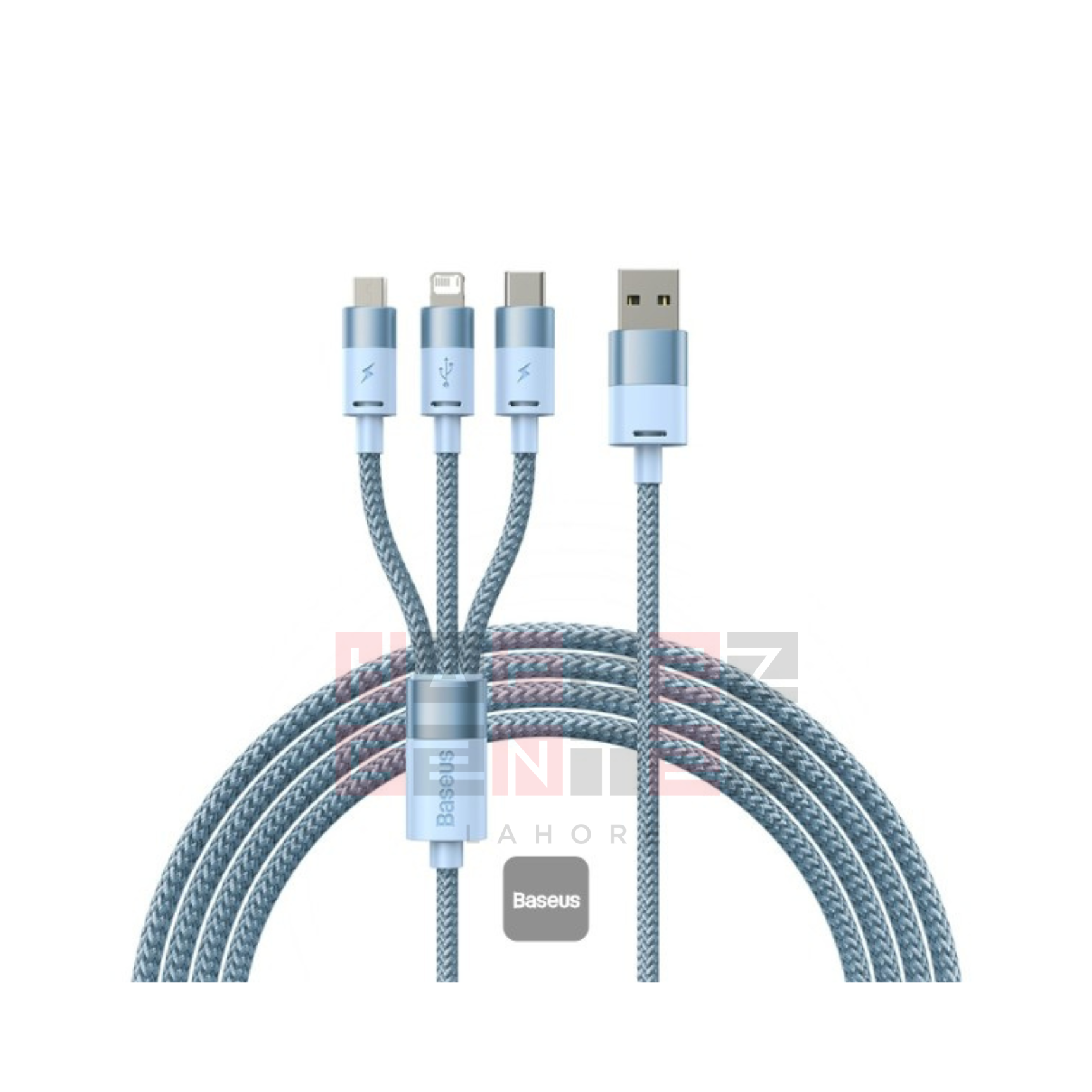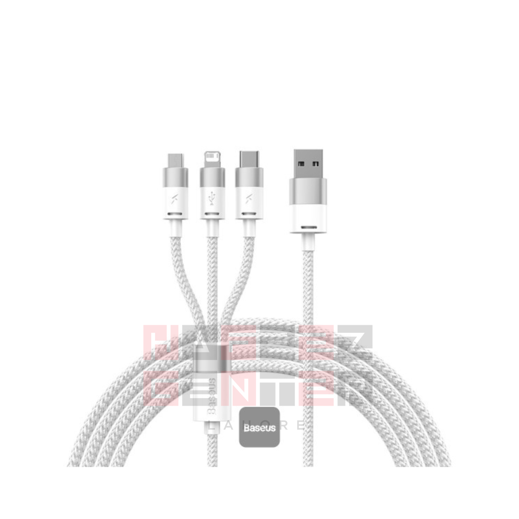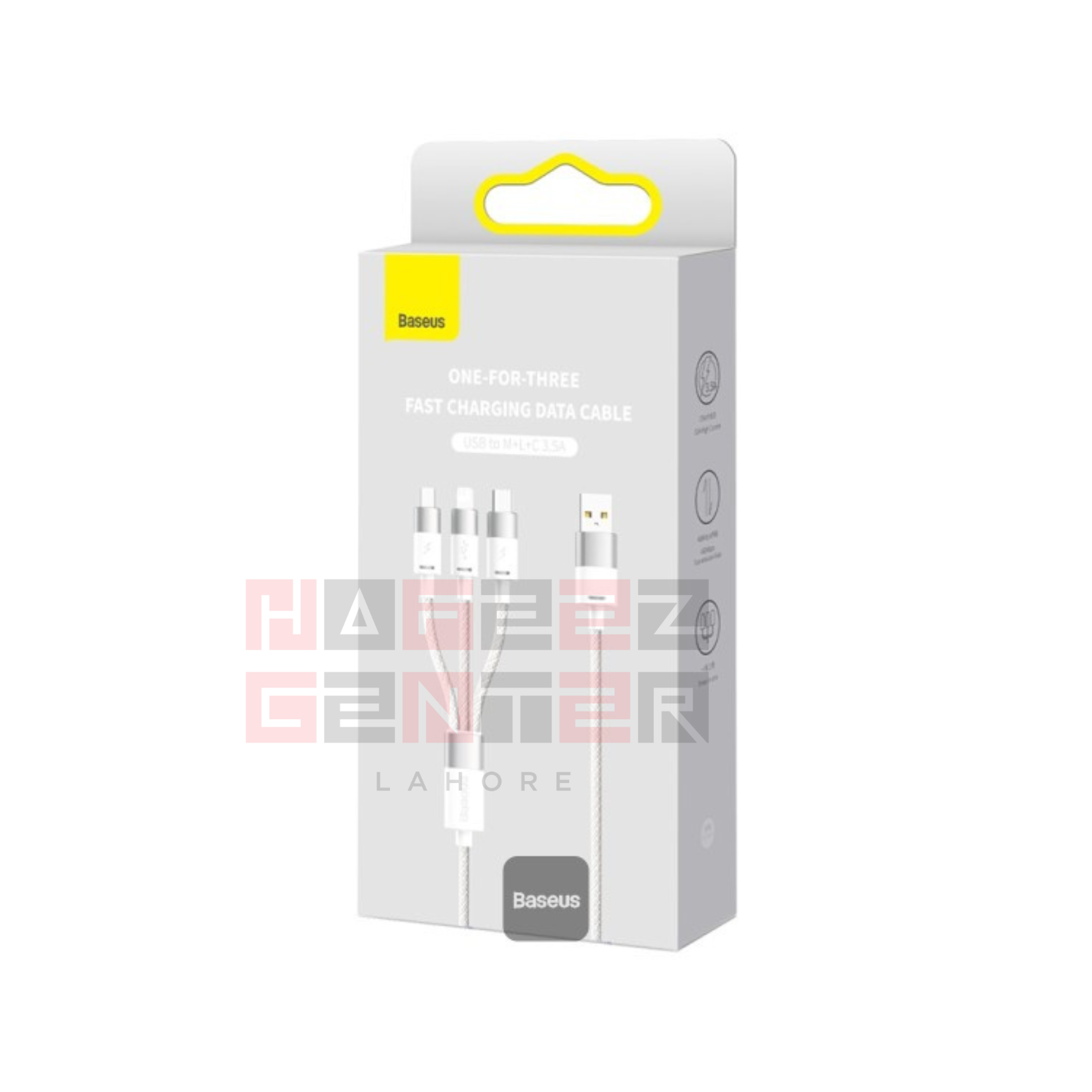 Name: Baseus StarSpeed 1-for-3 Fast Charging Data Cable, Model No.: CB000030, Material: Aluminum alloy + nylon, Current: 5V?3.5A, Transmission Rate: iP/480Mbps, Input: USB, Output: Micro+iP+Type-C, Color: Black,, Length: 1.2m”